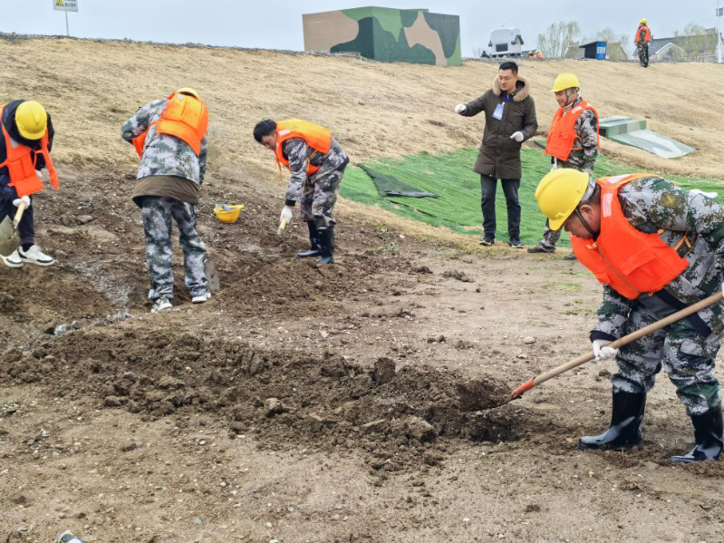 实操教学在训练场演练区开展。尽管寒风凛冽,但所有学员用激情和热血点燃寒冬,掀起新年练兵热潮,按照教官的指导勤加练习。通过实操练习,学员将理论与实践结合,基本掌握渗水、管涌、滑坡等常见险情的处置措施,积累了实操抢险经验。